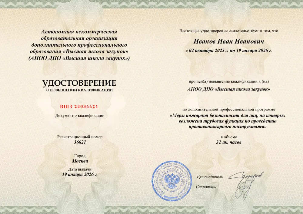 Повышение квалификации, 32 академических часа, 3 модуля: нормативно-правовые основы и обязанности инструктора, содержание и методика проведения противопожарных инструктажей, практические знания и навыки для эффективного обучения персонала. Онлайн-обучение в в Курске с итоговой аттестацией.