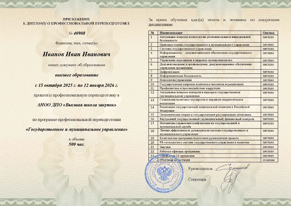 Профессиональная переподготовка, 500 академических часов, 25 модулей: правовые основы и система государственного управления, управление персоналом, финансами и противодействие коррупции, социальная политика и экономическое регулирование, цифровизация, закупки и информационная безопасность. Онлайн-обучение в в Курске с итоговой аттестацией.